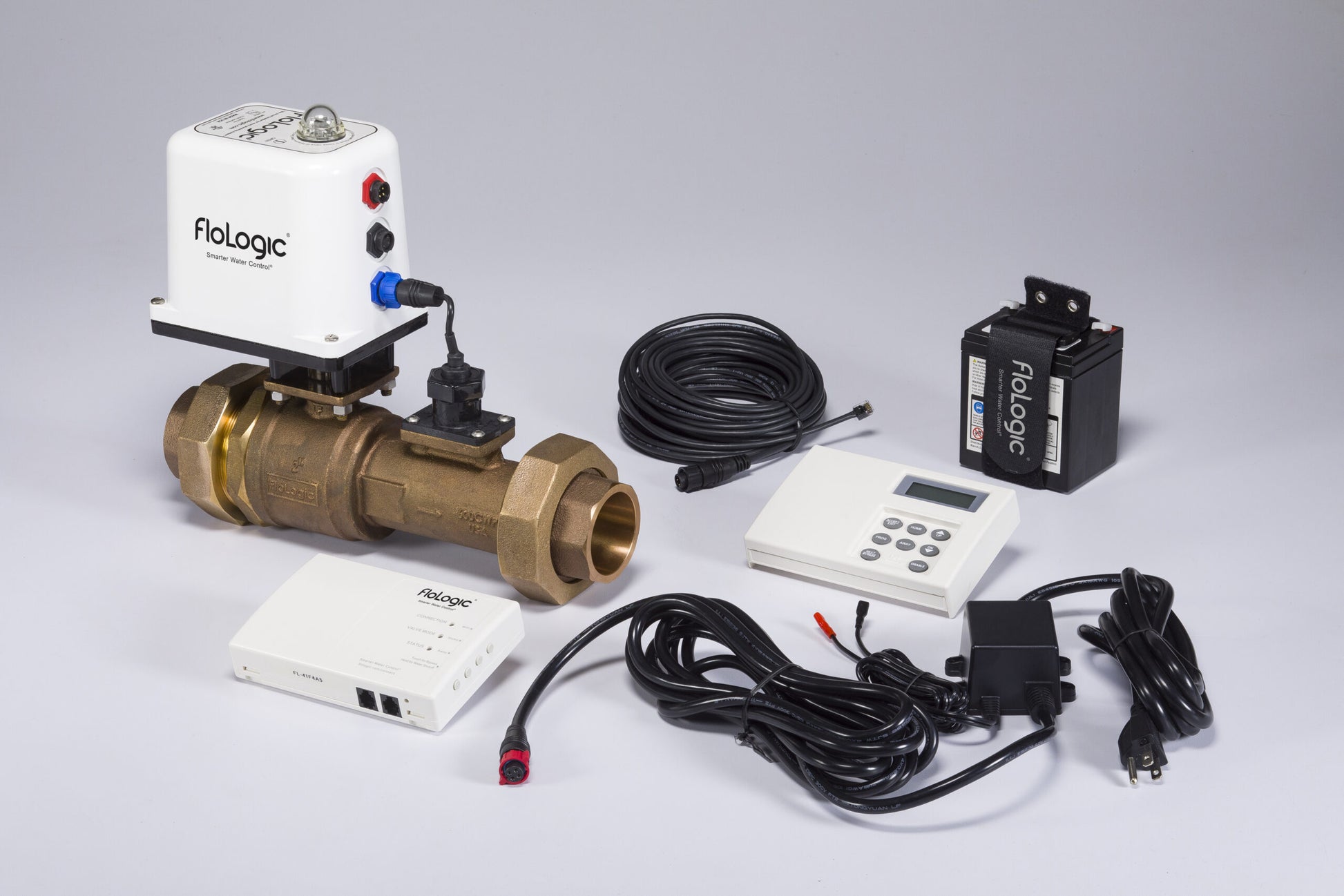 This is a complete FloLogic System, including valve-actuator, power supply, backup battery, local control panel and WiFi Connect module for app-based operation and alerts. The FloLogic 2-Inch System installs in your water line as it enters your property and uses exclusive flow-sensing technology to identify virtually all leaks--as small as a pinhole, up to high volume leaks--and automatically shuts off the water upon detection. Enjoy the peace of mind that your risk of devastating plumbing supply leaks is greatly reduced you when you purchase a FloLogic System today. The patented system works by recognizing uninterrupted flow that exceeds the norm for the occupancy status of the property.